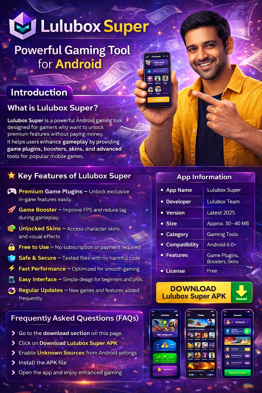 Unlike many mod tools that require root access or risky permissions, Lulubox Super APK works safely on most Android devices. It offers better compatibility, frequent updates, and a cleaner user interface compared to other gaming plugins.